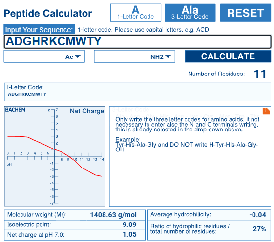 Peptide Calculator (Bachem). Peptide calculator is a convenient tool for scientists as a molecular weight peptide calculator,