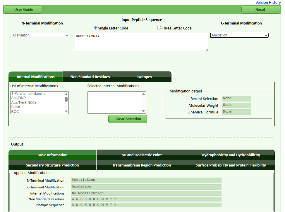 Peptide Property Calculator ver 3.1 (Biosynthesis).
